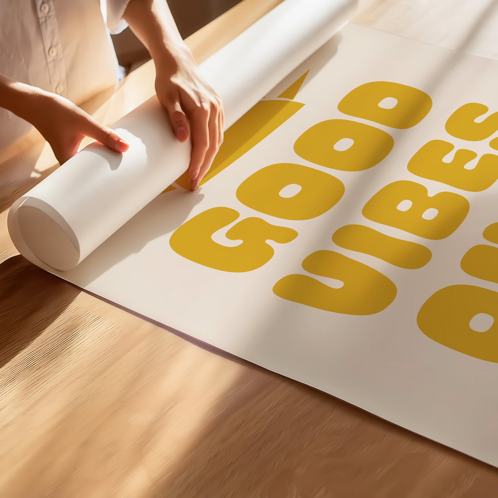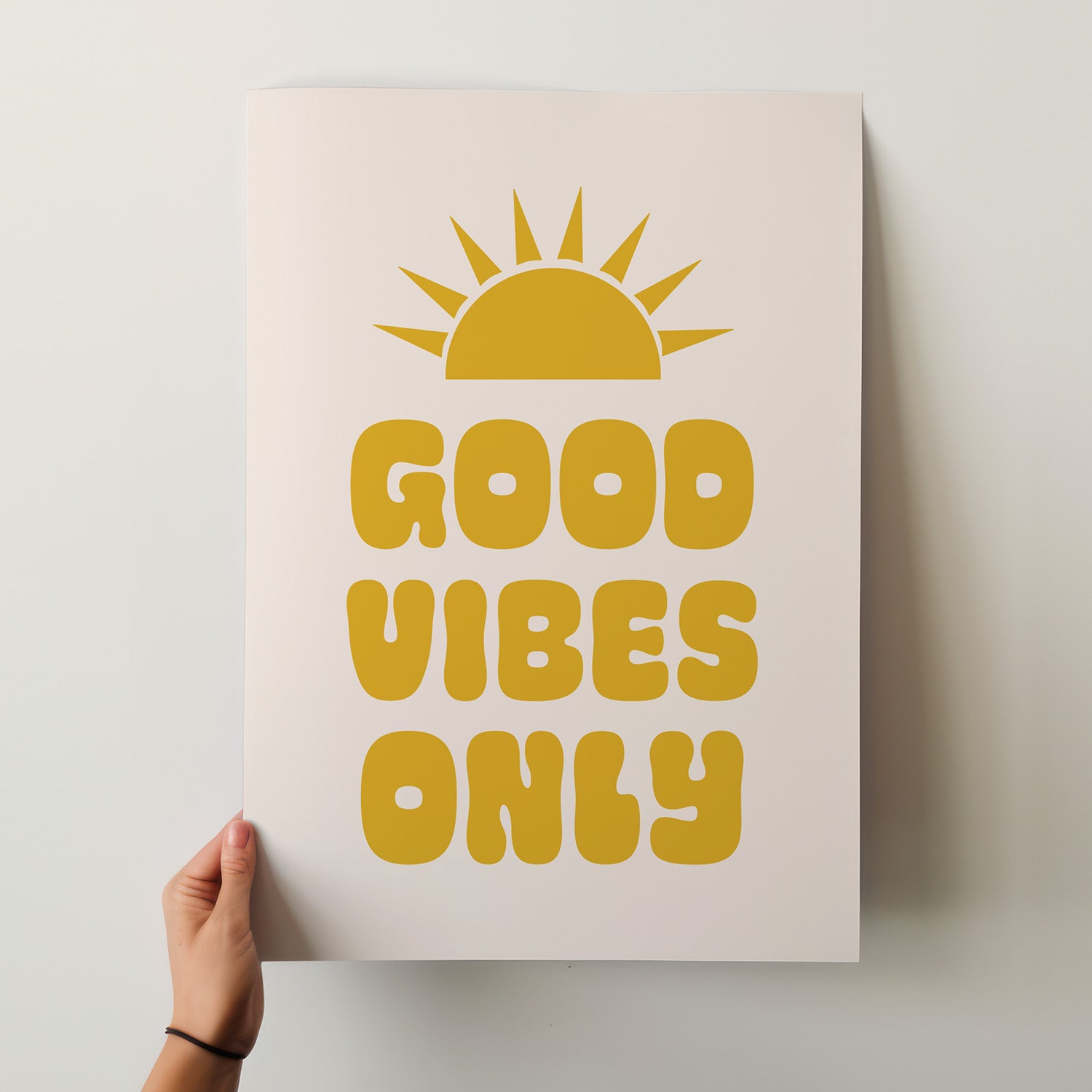 Elevate your decor with a touch of sunshine and positivity—select your preferred size and order your "Good Vibes Only" poster today!