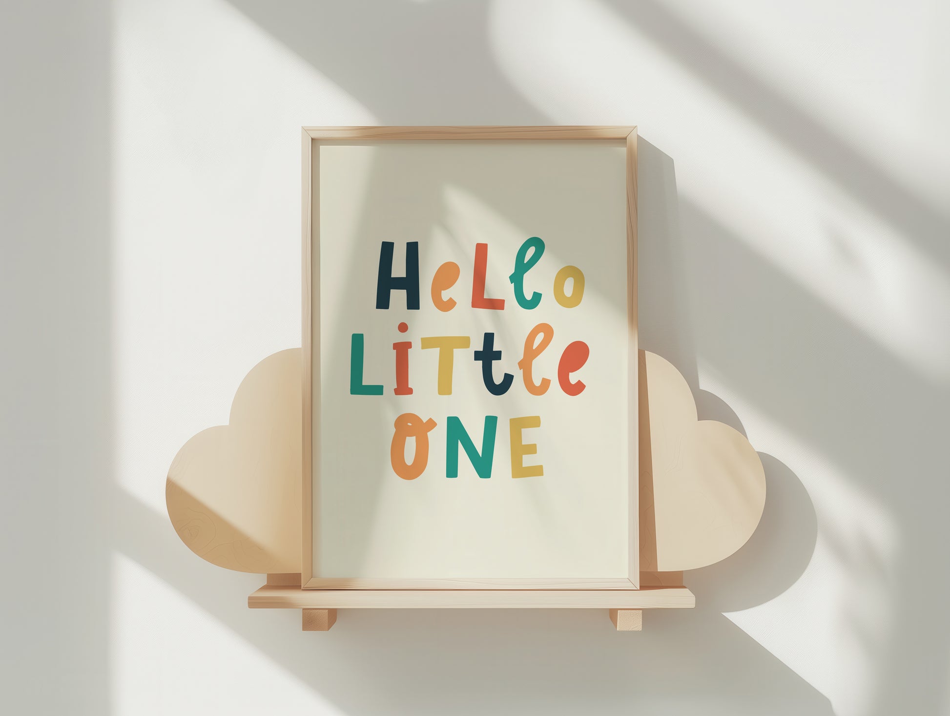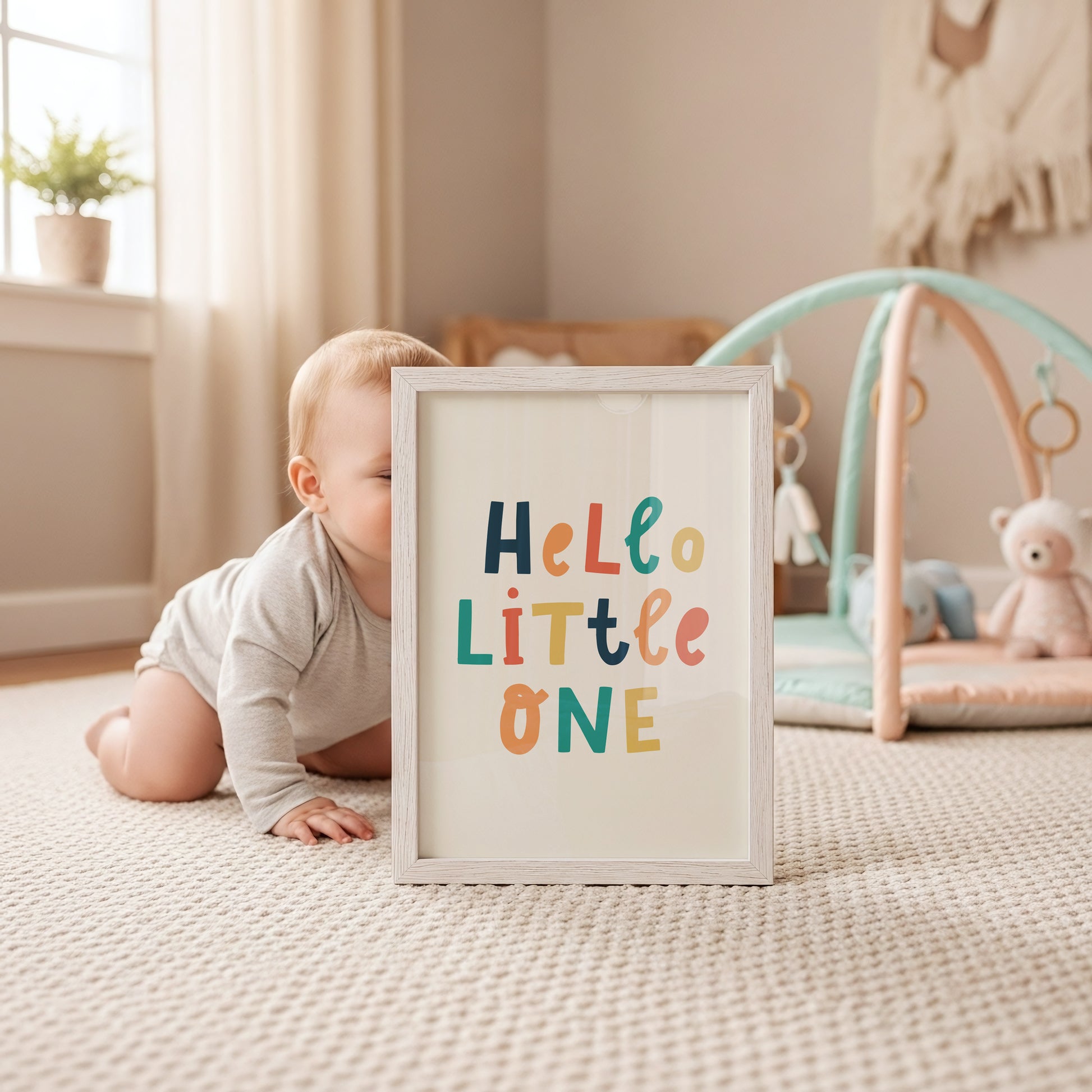 Hello Little One Nursery Poster - Vibrant Hand-Lettered Art Print for Baby's Room