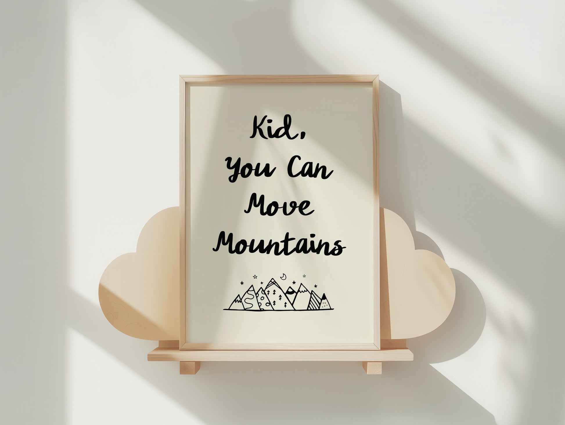 Kid, You Can Move Mountains Inspirational Poster - Empowering Nursery & Kids' Room