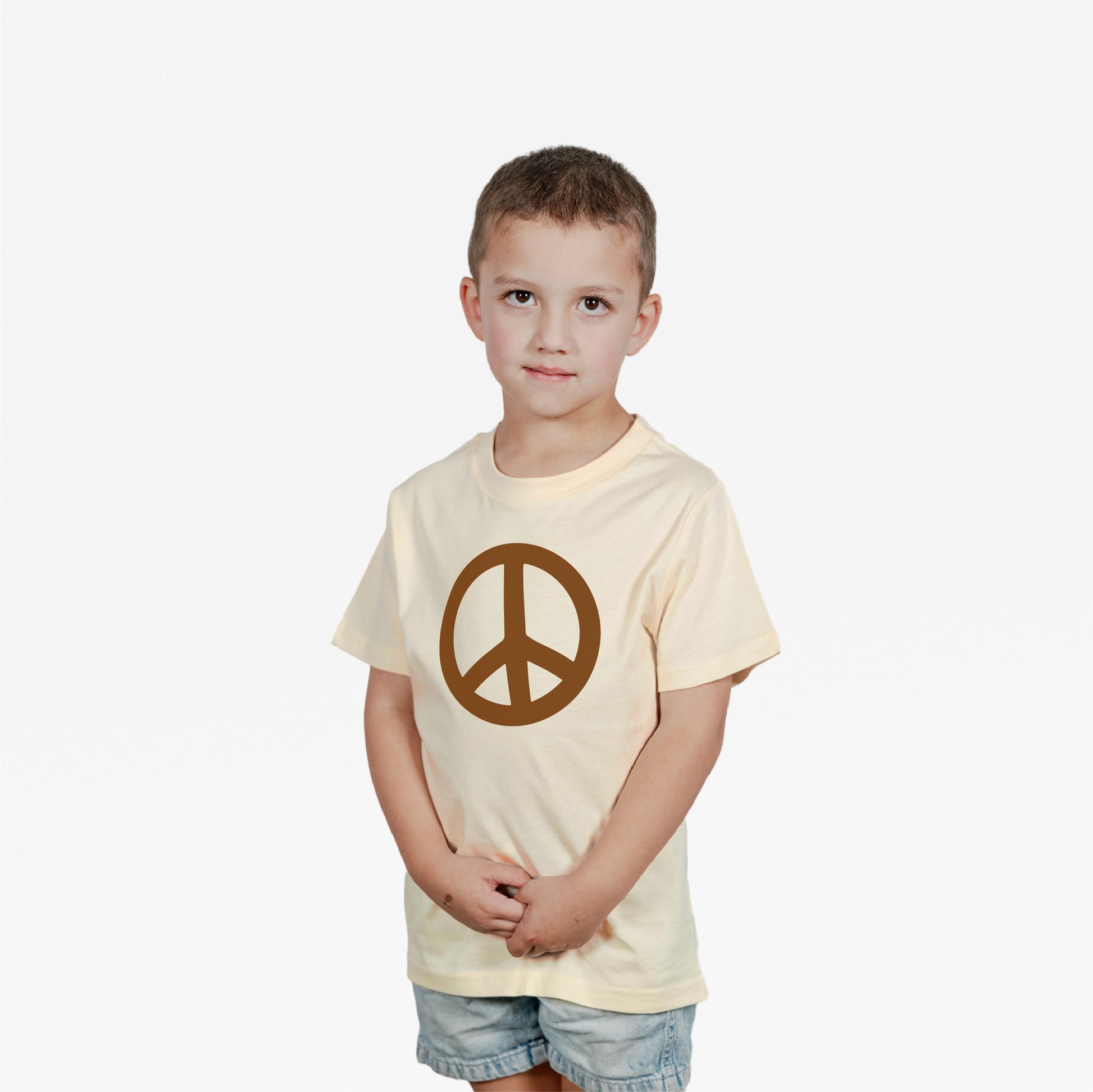 Kids Peace Tee - Brown on Ecru