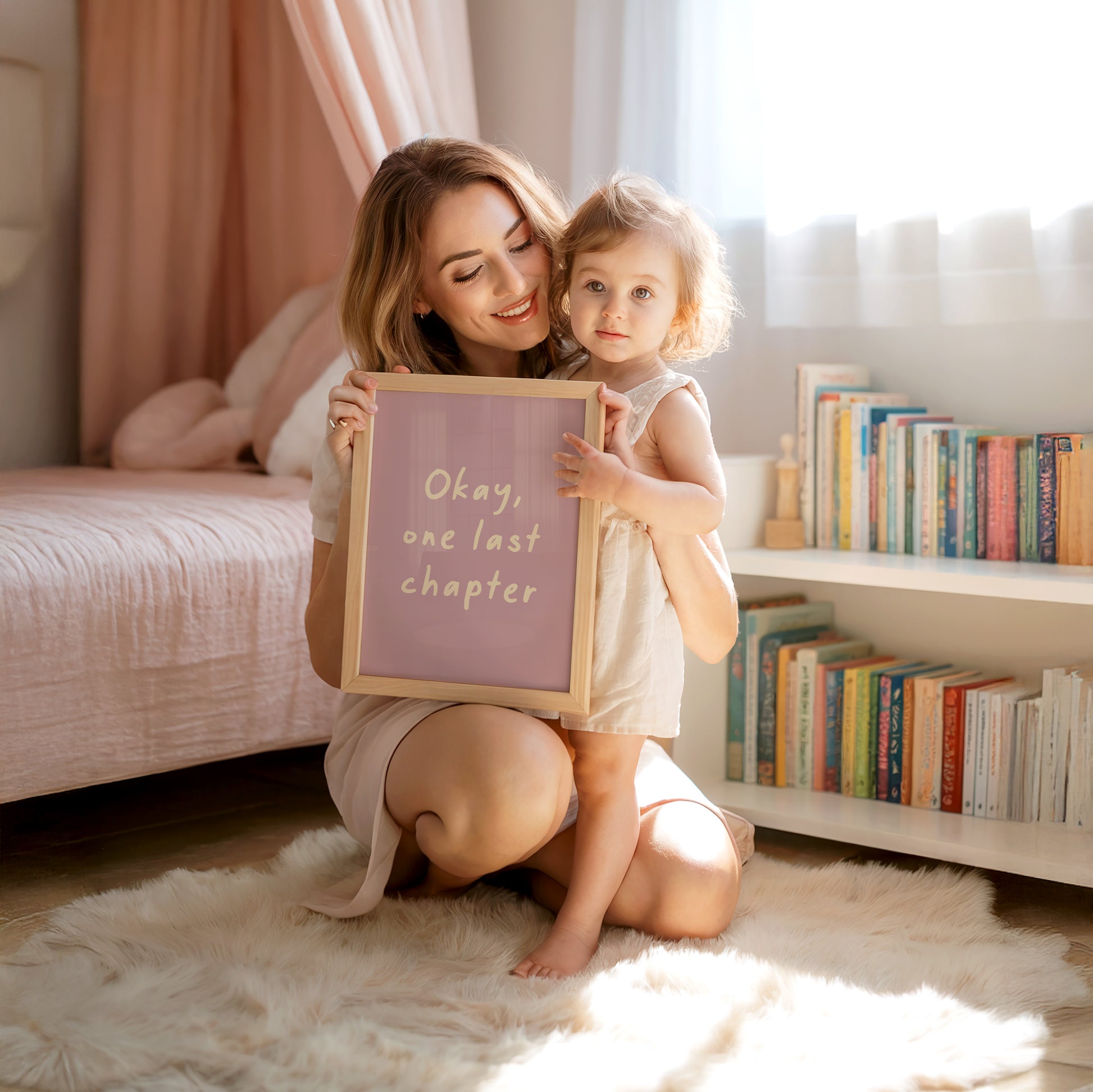 Bring a little calm, kindness, or quiet joy to your walls with this hand-lettered, softly illustrated art print. Designed to feel personal, not perfect — every piece carries a gentle tone and a touch of soul, whether it’s a reminder to be kind, a note of encouragement, or a quiet thought worth holding onto. The 'Okay, one last chapter' design, featuring a soothing mauve background and a comforting, handwritten feel, is perfect for cozy reading nooks or bedrooms.