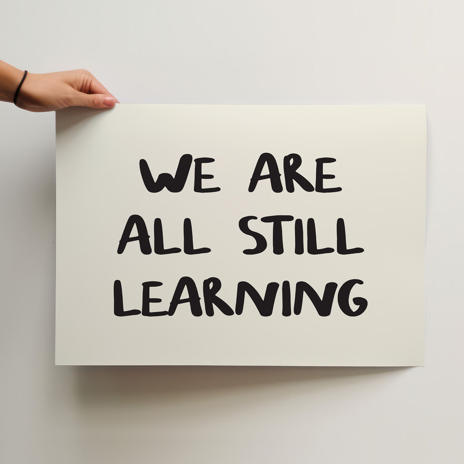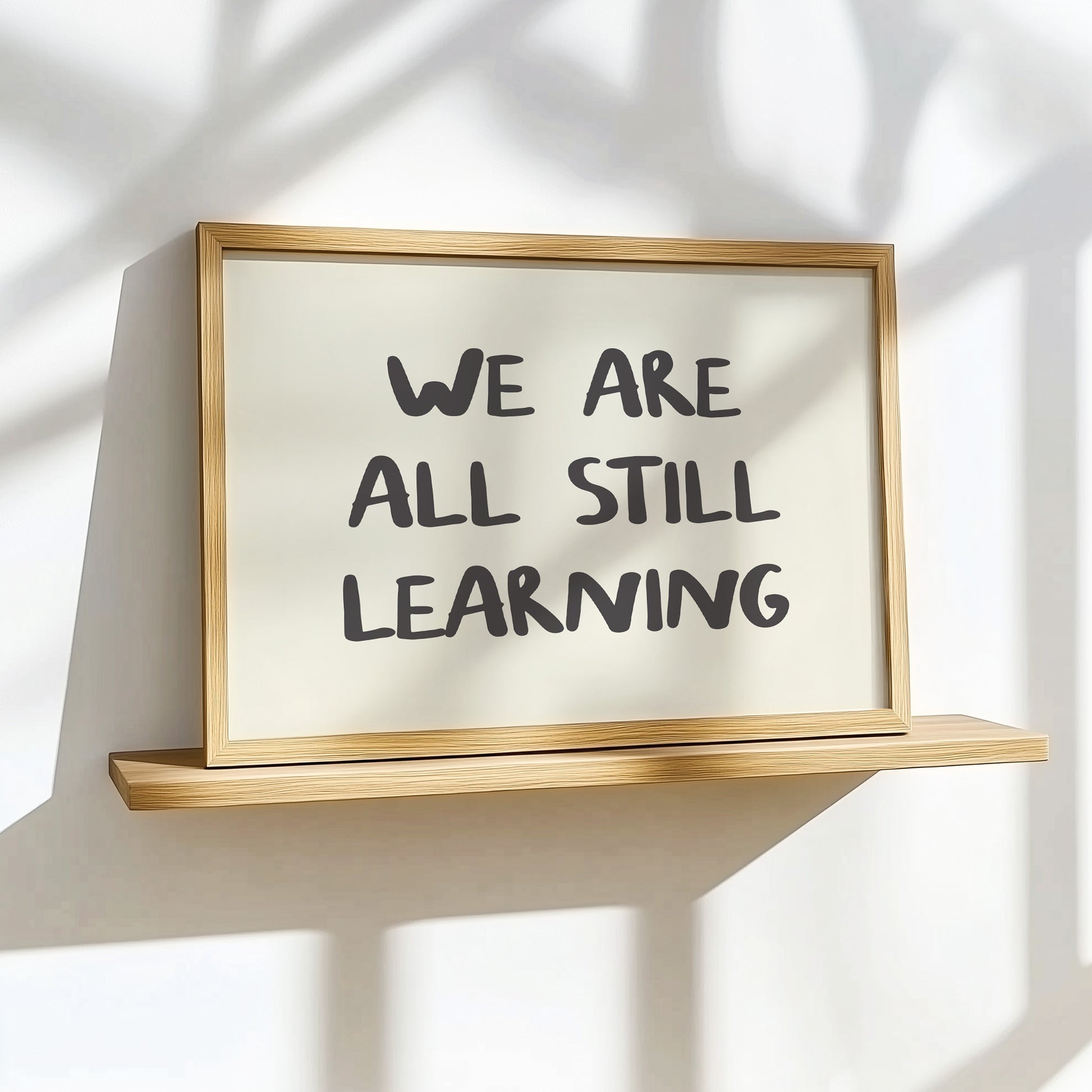 Embrace the beauty of continuous growth with our "We Are All Still Learning" art print. This hand-lettered, softly illustrated poster brings a gentle reminder of calm, kindness, and quiet joy to your walls. Designed to feel personal, not perfect, every piece carries a gentle tone and a touch of soul—a quiet thought worth holding onto as you navigate life's journey.